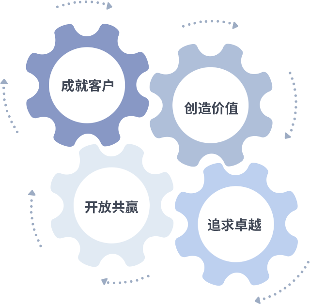 成就客户是一切决策的出发点,创造价值是衡量所有工作的标准,追求卓越是3499拉斯维加斯做事做人的态度,开放共赢是3499拉斯维加斯的格局也是最终的结果。价值观的齿轮环环相扣,推动着组织里的每个人不断向前。